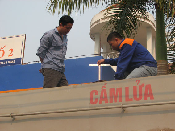 - Kiểm tra xác định mức chứa xăng dầu trong xitéc ôtô So với mặt trên của tấm mức. Kiểm tra Bazem dung tích xe, so sánh hàng háo thực tế của xe ( lượng ghi trong hóa đơn). Đo tính xác định hàng thực nhận tại Xitéc ôtô. Kiểm tra nước trong Xitéc ôtô bằng thuốc thử nước.