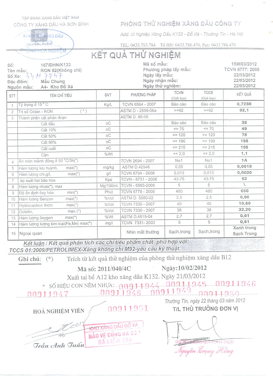 Các mặt hàng xăng dầu trên đều được quản lý theo đúng tiêu chuẩn Việt nam.